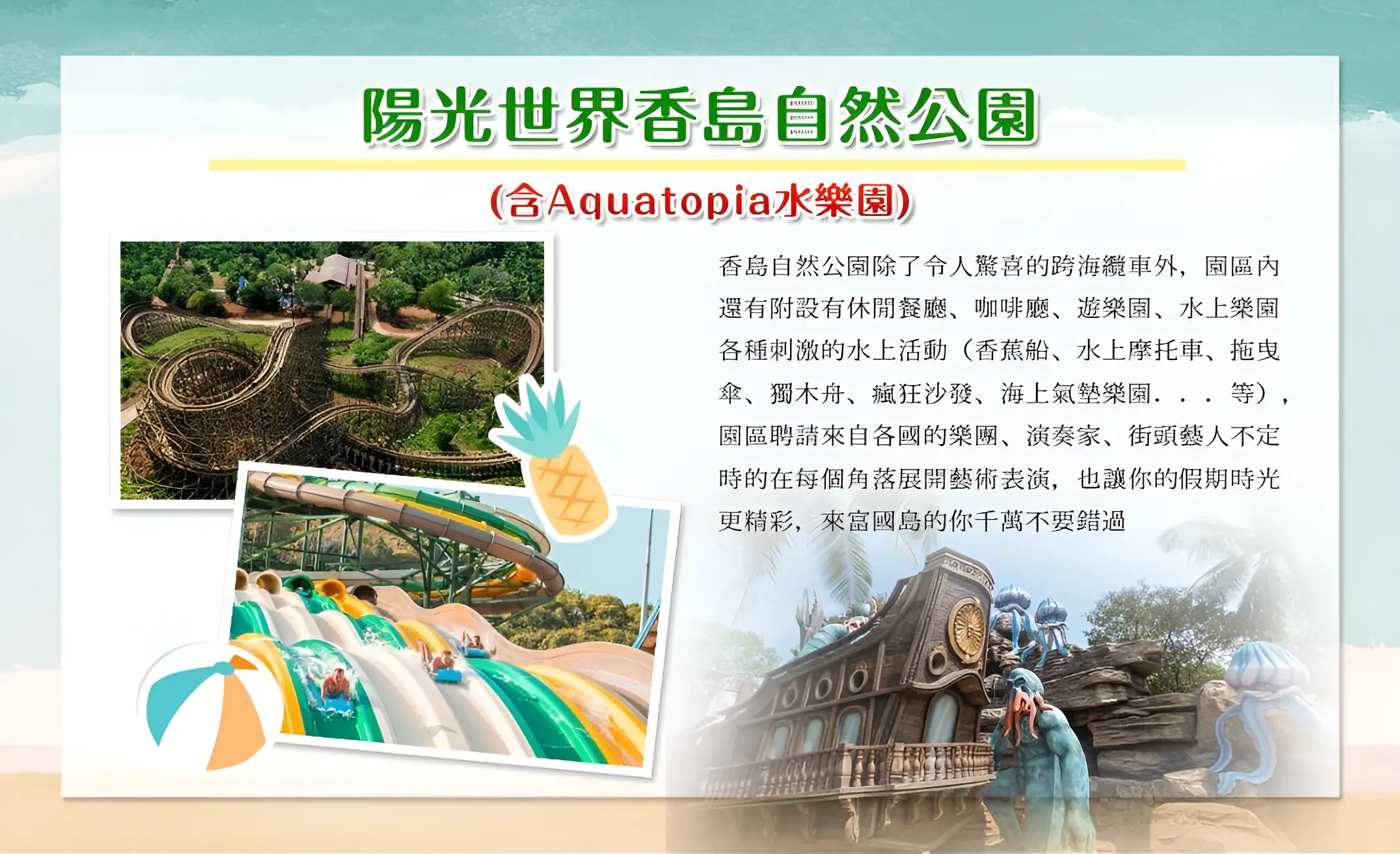 世界紀錄最長跨海纜車 ~360度海景盡收眼底 → 太陽世界香島 自然公園 → Aquatopia水樂園