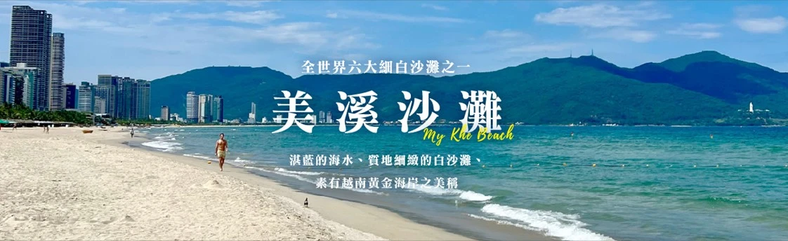 【漫步美溪沙灘】美溪海灘(My Khe Beach)離峴港只有一橋之隔,長達900米,可以從市中心慢慢散 步過來, 2005年被聯合國科教文組織認定為「全世界六大美麗沙灘之一」!湛藍的海水、質地細緻的 白沙灘,海灘總長約30公里,漫步沙灘欣賞美景。腳踩在柔然潔白是沙灘上,沿途欣賞絕美海景,吹 著海風,自由自在地遊覽風景。