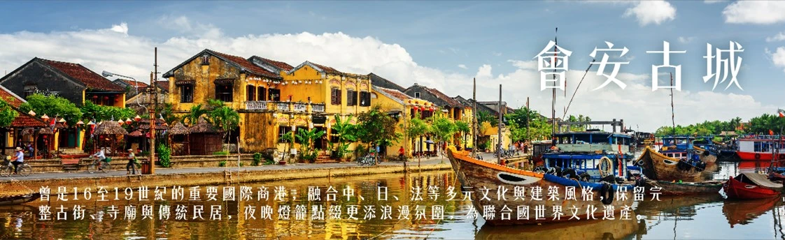 【會安 Hoi An】充滿著中國文化色彩濃厚的古城,會安古城於 17 世紀時東南亞的國際港,也是當地越南主要貿易港。這古老的街道,百年古厝處處顯露了這而獨特的文化氣息,西元 1999 年的 12 月被聯合國世界文教組織列為「世界文化遺產」,走入古城有如一座活生生的博物館,聚有百年以上歷史文化。