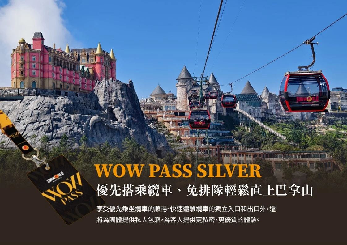 峴港→巴拿山~搭乘世界最長纜車來回【含wow pass silver門票優先搭乘免排隊】→法國山城→熱門打卡點:黃金橋天空步道、空中花園、粉紅城堡+月亮宮(小火車)→Fantasy Park夢想樂園