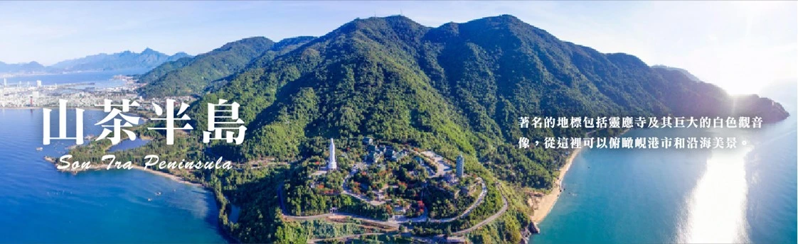 【山茶半島】距離蜆港市中心約半小時車程,可以鳥瞰整個峴港市。沿途景色不在話下,觀山觀海, 各取所需。山上觀音像高達67公尺,據說是亞洲第一高,以大理石做成,肅穆非常,旁靈應寺擺設羅 漢,姿勢各異其趣!!過去是美軍軍事基地,越戰時期,是北越最畏懼害怕的軍事基地,現在已全部開 放。由於地理位置優異,假以時日,必成觀光重要景點。