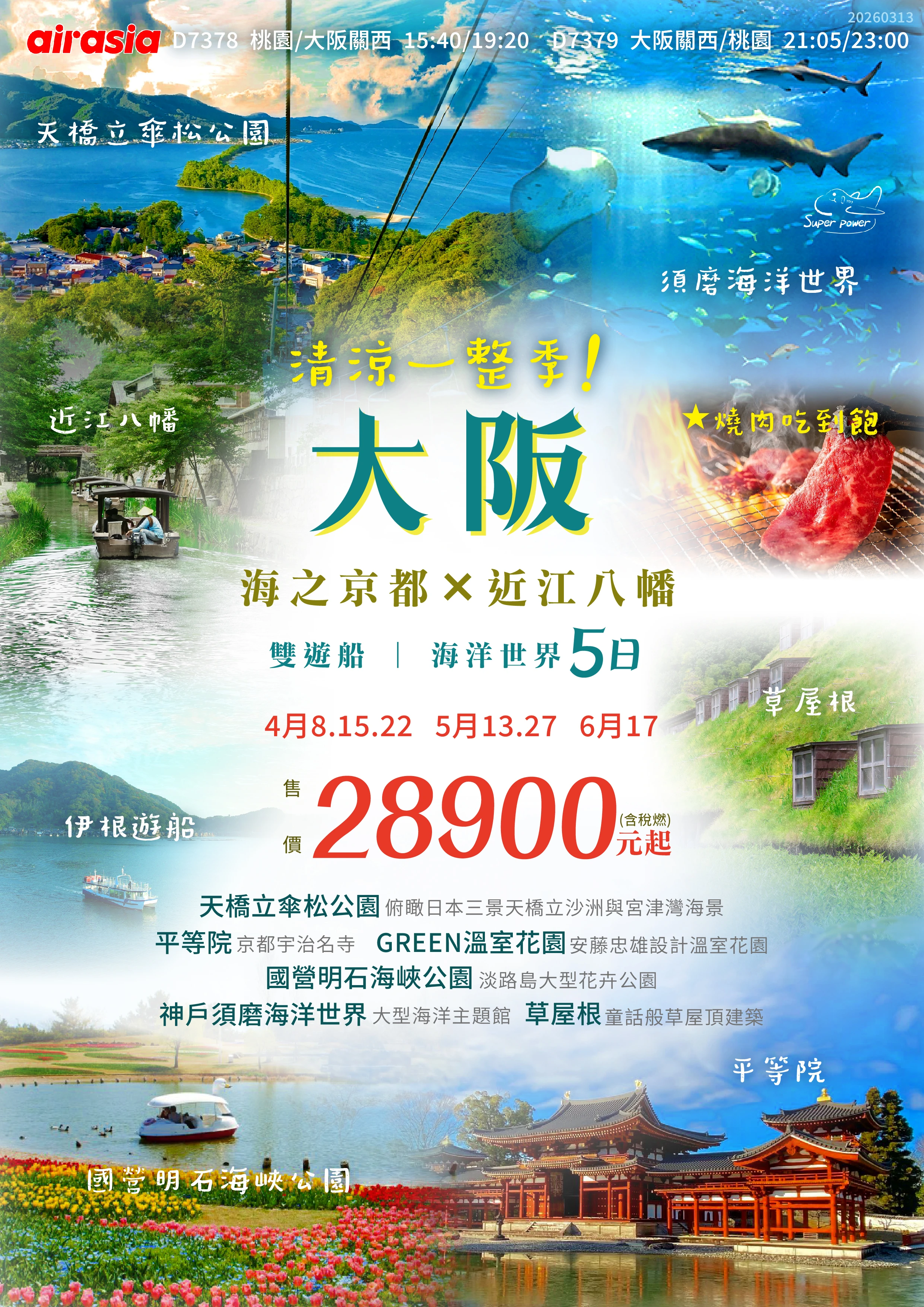 【4月限定】越南富國島5日特惠遊~ 升等2晚五星飯店*全程不進購物站* 只要$19900起(含稅燃)!!! 【台中直飛】越南岘港好好玩~ 入住五星飯店*龍蝦吃到飽* 星宇、越捷航空任你選!!! 號外!自2025/07/01起前往菲律賓旅遊免簽證~ Promotion限時優惠全部泰國越南韓國日本菲律賓長程線印尼柬埔寨日本 【超值關西】漫步京都.和歌山電鐵.黑潮市場.心齋橋半自助5日長程線 波羅的海-三小國10天柬埔寨 雙城榮耀-金吳探秘七日印尼 【天天出發】浪漫探尋峇里島之美五日~2人成行泰國 普吉島5天4夜(小資版)泰國 普吉島5天4夜(奢華版)泰國 普吉島5天4夜(嗨玩版)泰國 泰秘境5日菲律賓 超值宿霧與鯨共游+資生堂島雙跳島五日(6人成行)菲律賓 鯨豔宿霧與鯨共游薄荷島大斷層海豚游蹤五日 (2 晚薄荷島+2 晚宿霧)(6 人成行)菲律賓 宿霧機加酒自由玩5日泰國 泰北桃花源~清邁傳說5+1日泰國 泰北桃花源~星月雙城傳說5+1日韓國 ZE易起粉櫻濟州~(不走人蔘、保肝、土產)五日韓國 TW威瘋粉櫻濟州~ (不走人蔘、保肝、土產) 5日韓國 釜邱賞櫻趣5日(德威航空)(釜邱進出)韓國 釜邱賞櫻趣5日(易斯達航空)(清洲進出)越南 4~6月-升級版越來越好玩峴港五星龍蝦無限放題六日遊越南 4~6月-升級版越來越好玩峴港五星龍蝦無限放題五日遊越南 3~5月星宇峴饗‧龍蝦無限放題巴拿山‧會安古鎮‧魅力峴港秀六日遊越南 4~5月-星宇峴饗‧龍蝦無限放題巴拿山‧會安古鎮‧魅力峴港秀五日遊日本 大阪清涼一整季! 海之京都X近江八潘 五日越南 【太陽富國海島特惠遊】五日遊升等2晚五星顯示更多... Popular Tour熱門旅遊旅遊時光,每一刻都值得珍藏金碧輝煌的金閣倒影在水中搖曳,甚是美麗玩樂關西5日~京都.大阪.美山合掌村★黑毛和牛吃到飽、大阪水上巴士《入住2晚京都》了解更多濟州好好玩 4 天~黑豬肉烤肉吃到飽、夢幻天空階梯、 彩虹海岸道路、星光夜市、DIY 手作體驗、IG 打卡熱點好好玩濟州四天了解更多泰國華欣度假去~安帕瓦螢火蟲、賽福瑞動物園、船遊曼谷地標、兩晚五 星飯店五日了解更多佛國寺前櫻花林[UNESCO 世界文化遺產]【購物兩站】花漾釜慶.鎮海賞櫻 5 日~慶州古城賞櫻、私房賞櫻、天空步道、南浦 洞逛街、美食(不進人蔘+保肝/含 WIFI+轉接插頭)了解更多經典清邁+清萊五日遊(無購物)了解更多金碧輝煌的金閣倒影在水中搖曳,甚是美麗京都慢旅.和服體驗5日~日本環球影城「超級任天堂」、清水寺、美山合了解更多 Recommended Tour推薦旅遊菲要好玩!歐斯陸與鯨鯊共舞,薄荷島、雙跳島,5日遊我們的畢業小旅行大樂畢旅CP值最高,聲量最強, 經驗豐富日本賞櫻,限量機位賞櫻名所100選經典義大利10日土耳其航空.世界遺產.彩色島.天空之城.OUTLET.午後自由時光 Recommended Tour推薦旅遊菲要好玩!歐斯陸與鯨鯊共舞,薄荷島、雙跳島,5日遊我們的畢業小旅行大樂畢旅CP值最高,聲量最強, 經驗豐富日本賞櫻,限量機位賞櫻名所100選經典義大利10日土耳其航空.世界遺產.彩色島.天空之城.OUTLET.午後自由時光 Video影片專區