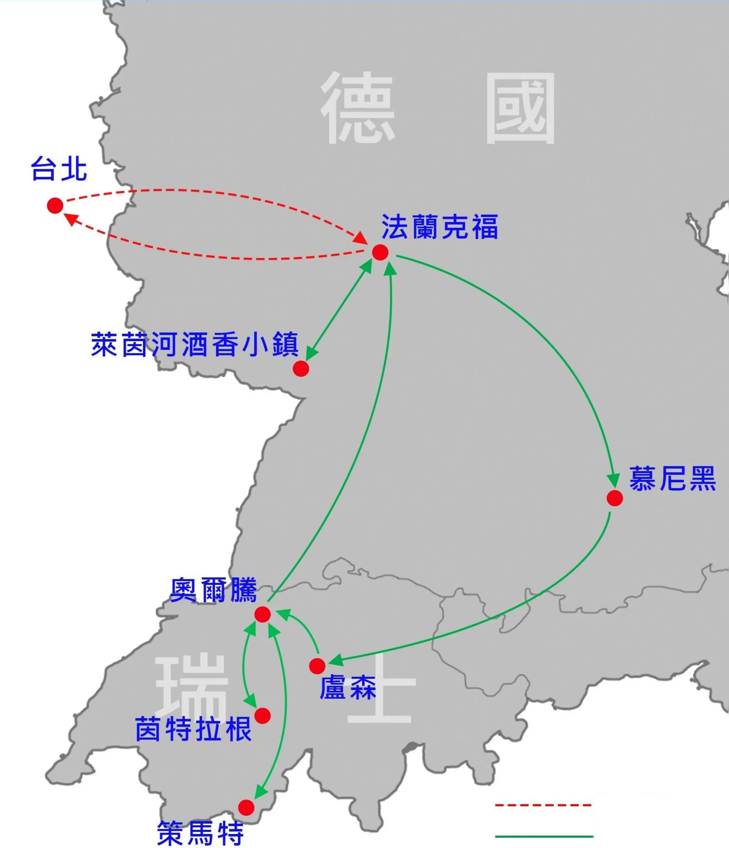 一趟德國、瑞士阿爾卑斯山山峰美景之旅,隨著飛機起飛,正式展開。