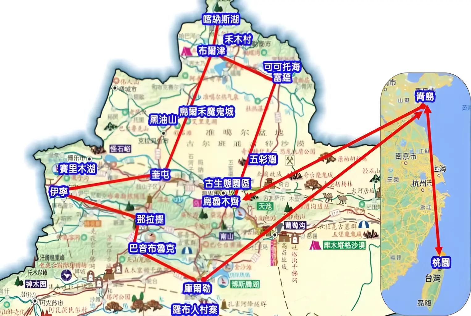 | 第12天 | 16:20 | 23:10 | 庫爾勒機場/青島機場 | 山東航空 | SC-4858 |