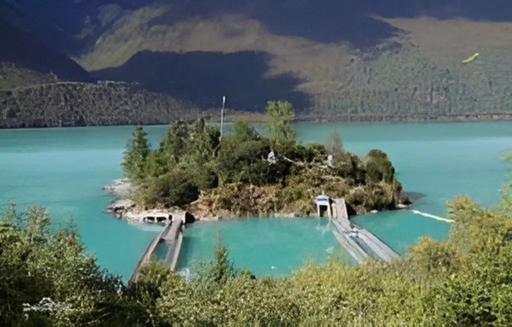 【湖心島】巴松措又名錯高湖,藏語裡意為“綠色的水”。西藏有許多聖湖,諸如納木錯、羊卓雍錯、當惹雍錯、色林錯,這些湖泊的湖水普遍都是藍色的,或深藍、或淡藍、或寶藍、或淺藍,而巴松措的湖水卻是令人心醉的翡翠般的綠色,而且隨著遠近不同,湖水的綠色現出不同的層次、不同的濃淡、不同的美感。巴松措最引人注目的是湖心的一座小島,名為紮西島。在湖畔隔岸望去,島上滿是綠樹,跟綠色的湖面相呼應著,兩條寬約2米的浮橋把島與岸相連,但從山上向下望去,紮西島猶如一顆寶石般鑲嵌在巴松措湖中,使整個巴松措刹時便有了靈氣。