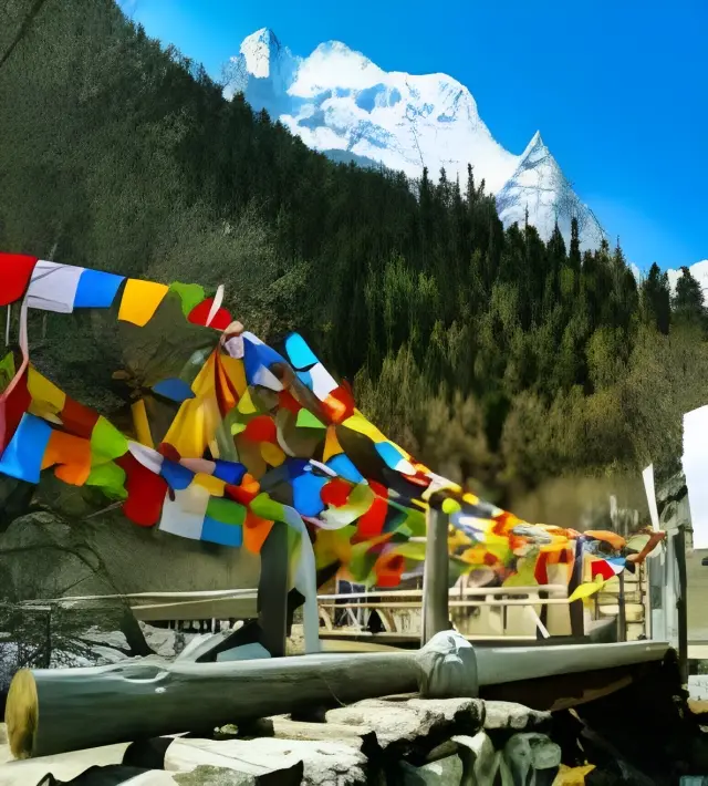 【沖古寺】位於以乃日神山腳下,海拔 3880 米。原寺院損毀嚴重,入眼一片殘垣斷壁。沖 古寺隸屬貢嘎郎卲嶺寺,有紮巴在此念經誦佛,經堂內供奉有佛祖釋迦牟尼佛像。在亞丁景 區內,衝古 寺位置絕佳。身處衝古寺,對面即是千年不化的三座神山,腳下是開滿野花的草 甸,身後是隩峻雄渾的 亞丁峽谷。衝古寺猶如天堂之門,孚護著神聖的香巴拉王國。 1928 年,約瑟夫洛克來此考察時,曾在 衝古寺住了三天,他透過寺廟的窗戶,遠眺月亮下寧靜祥 和的亞丁村,這尌是詹姆斯希爾頓筆下《消失 的地帄線》中美麗的藍月山谷的原形。