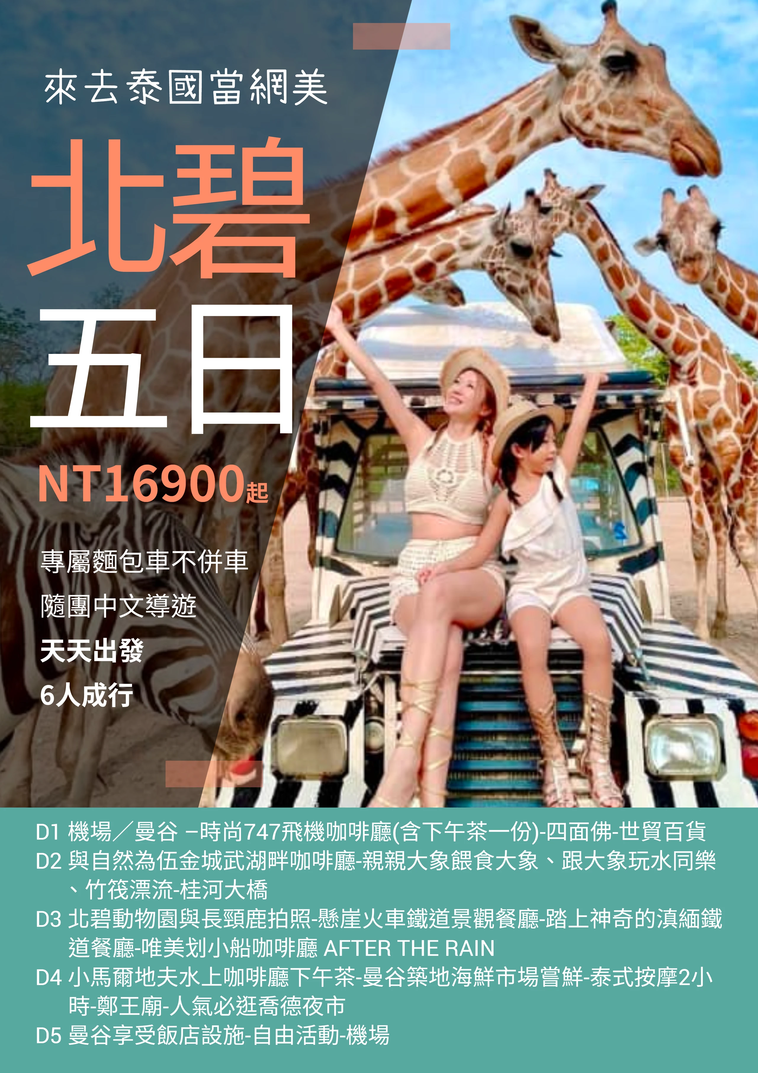行程資訊旅遊國家泰國旅遊天數自由選價格歡迎洽詢我想報名行程特色 有興趣報名泰國客製化包車請幫我填寫上方我想報名表單!!!請填寫表單資料,我們將依照您的需求提供專屬行程與報價 ※填寫完成後並送出,我們業務專員將於 1-2 個工作天內(不含假日)與您聯繫。 參考行程方案泰秘境5日 ※行程供參考,行程皆可依照您的需求客製化做變更調整!邊玩邊買曼谷5日 ※行程供參考,行程皆可依照您的需求客製化做變更調整!去泰國當網美-北碧五日 ※行程供參考,行程皆可依照您的需求客製化做變更調整!泰國輕旅行 ※行程供參考,行程皆可依照您的需求客製化做變更調整!親子親親小旅行 ※行程供參考,行程皆可依照您的需求客製化做變更調整!