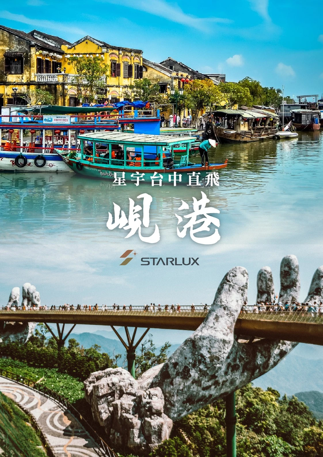 集合於清泉崗國際機場,搭乘直飛航班飛往越南中部第一大城『峴港』,峴港為中部最大的深水港口及商 業中心。峴港亦是2 ~ 15世紀國事強大的占婆王國的首都,被美國《國家地理》雜誌評為「人生必到的 50 個景點」之一。法式風情的空中小鎮、水清沙白的美溪海灘寧靜安逸的世遺古鎮,戰爭與歷史洗禮下, 蛻變的峴港呈現獨特的風貌和人文底蘊,讓現代文明和自然完美結合,無論你是想體驗地道的越式生活, 或是尋找融合了東方氣息的法式浪漫峴港.都能一一滿足你的想像。