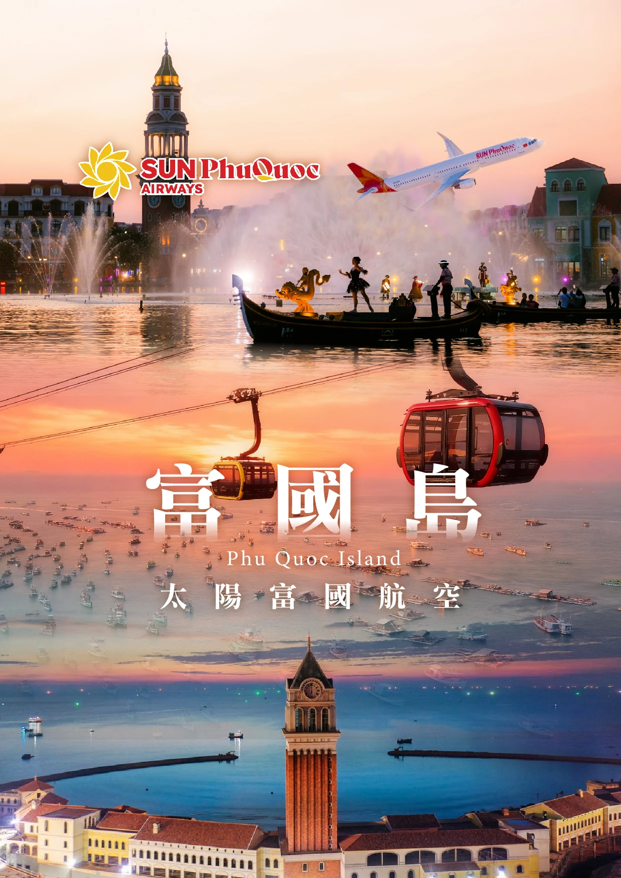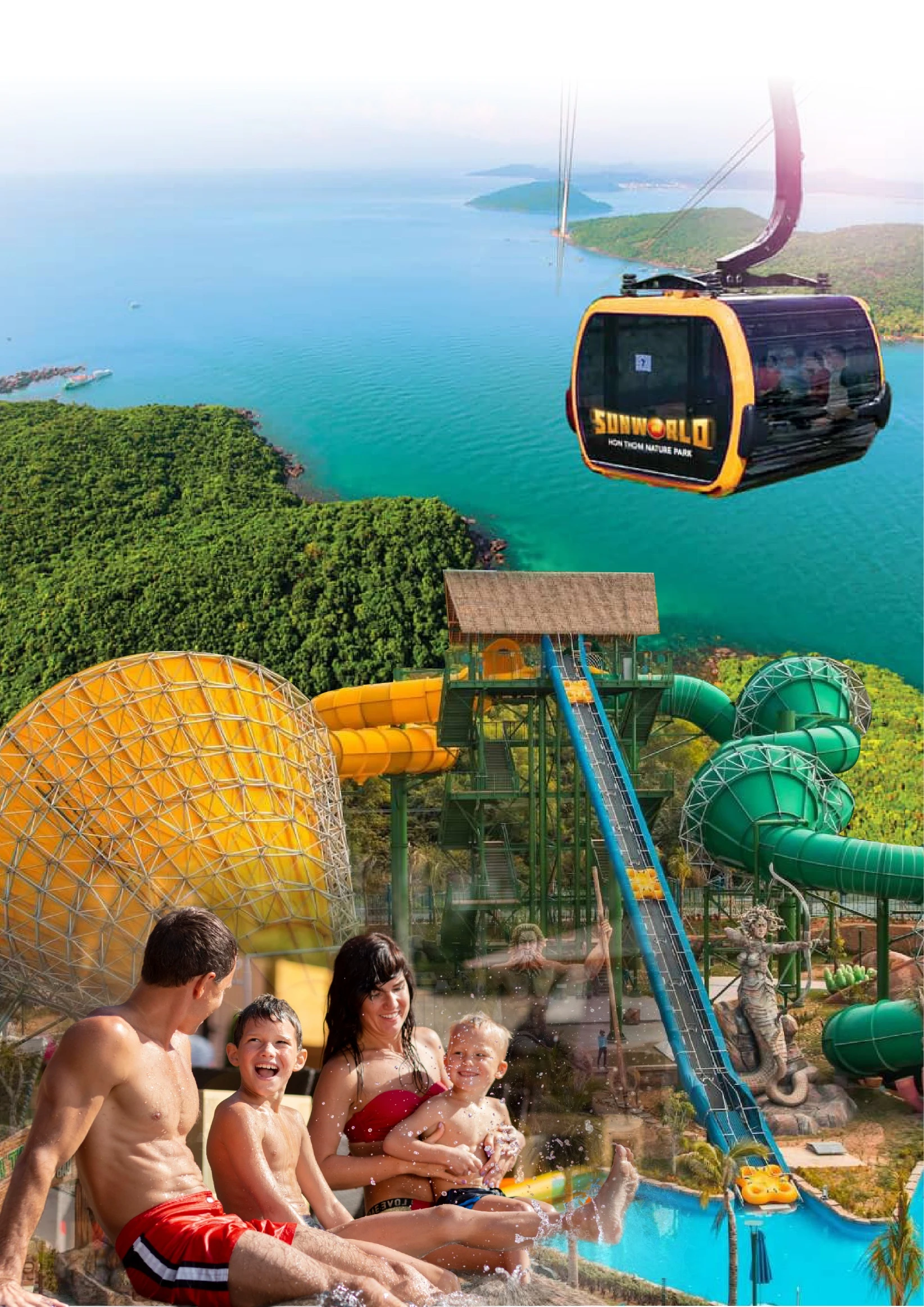 【太陽世界香島水上樂園】太陽世界Sun World 在越南發展觀光旅遊且獲得許多國際獎項,大受好評,繼中越巴拿山和峴港,越南最北端沙霸,北越下龍灣到2018 最新開幕的越南最南端的Sun World HonThom Nature Park 富國島太陽世界自然公園。目前共計有六大娛樂主題樂園系列。親子兒童互動區,藏著各式親水機關,讓您與小孩享受親子時光。金剛大水桶的淋漓洗禮更是不能錯過的清涼行程,天天都是潑水節,讓你全身濕濕樂。漂漂流河道,是情侶最愛明星設施,猶如戀愛巴士水上版,進入這條270 公尺的天然浪漫流域,沿路充滿鳥語花香與水瀑布驚奇,用最舒服的姿勢順留而下,帶您體驗自由自在水上漂。另有各式各樣刺激高空快速滑水道,不管是從密閉黑洞瞬間垂直下墜,或是階梯式噴射彈出、在彎曲滑道團團轉,上衝下洗的驚悚體驗,要你變成高分貝尖叫的自由落體。到此樂園一定要體驗最刺激『木造雲霄飛車』帶給您爬昇、滑落、急轉、迴圈的快感。除了令人驚喜的跨海纜車外,園區內還有附設有休閒餐廳、咖啡廳、遊樂園、水上樂園,園區也聘請來自各國的樂團、演奏家、街頭藝人不定時的在每個角落展開藝術表演,也讓你的假期時光更精彩,來富國島的你千萬不要錯過。