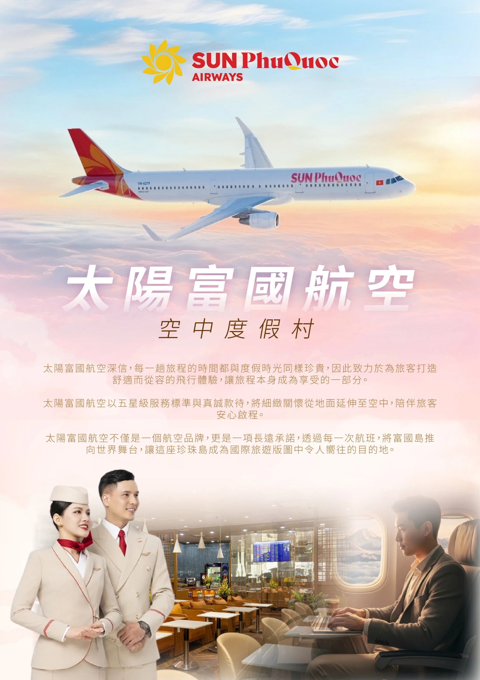 集合於桃園國際機場,搭乘直飛航班飛往越南南部大島『富國島』。